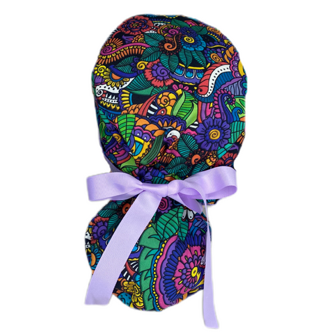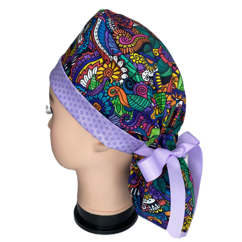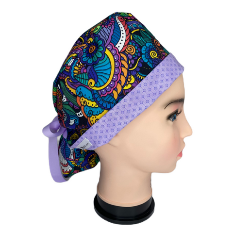 Ponytail – A perfect scrub hat for longer hair! Get the close fitting style of a Uni with room for all your hair. Great for those who like to wear their hair in a low ponytail