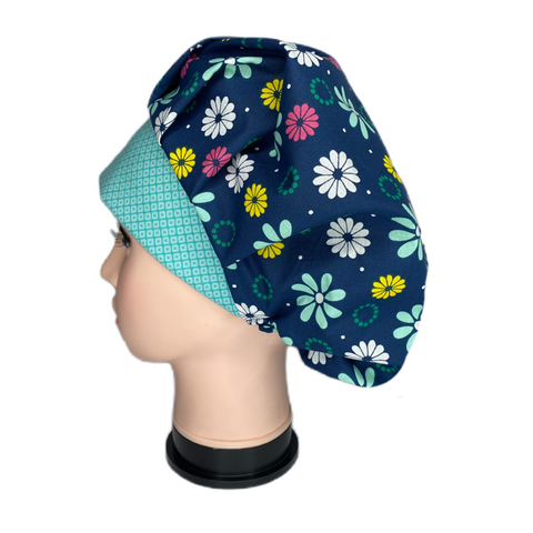 Bouffant – The American classic, plenty of room for your hair with a snug band around your forehead to keep everything in place. Use the elastic and cord stop in the back to adjust the size