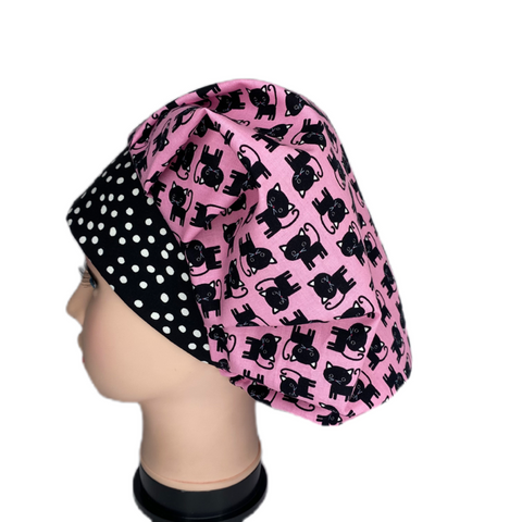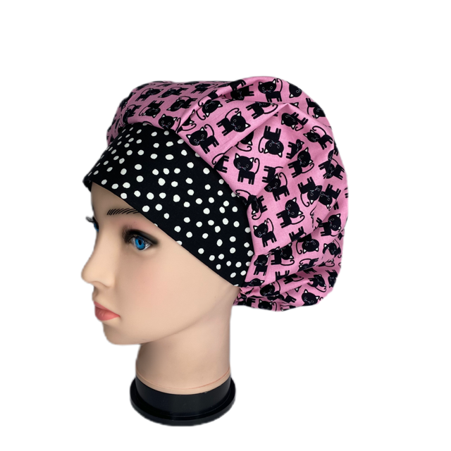 Bouffant – The American classic, plenty of room for your hair with a snug band around your forehead to keep everything in place. Use the elastic and cord stop in the back to adjust the size