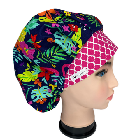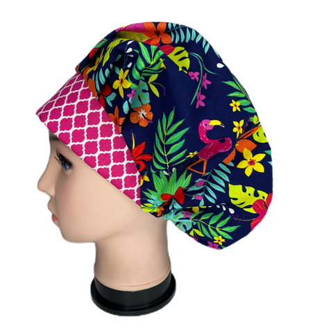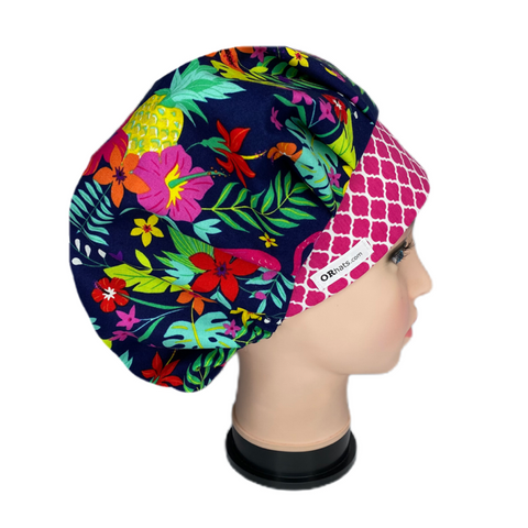 Bouffant – The American classic, plenty of room for your hair with a snug band around your forehead to keep everything in place. Use the elastic and cord stop in the back to adjust the size