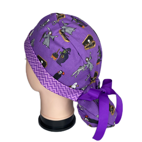 Ponytail – A perfect scrub hat for longer hair! Get the close fitting style of a Uni with room for all your hair. Great for those who like to wear their hair in a low ponytail